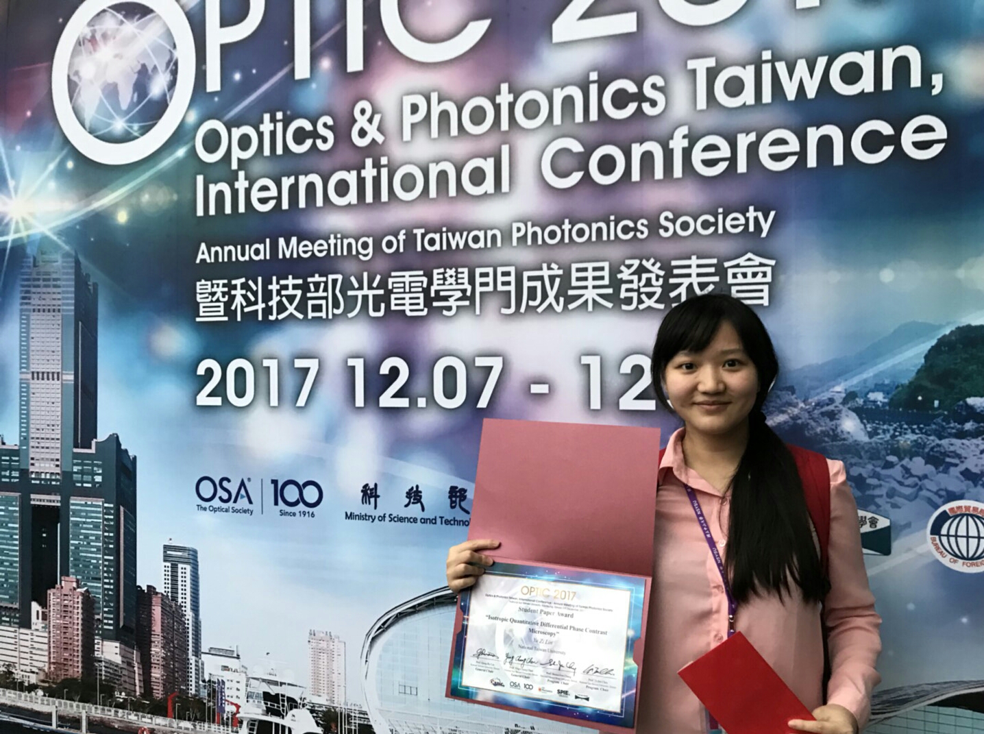 07 September 2018Congratulations - Student Yu-Tzu Lin Chien won TheOPTIC 2017 Best Paper Award